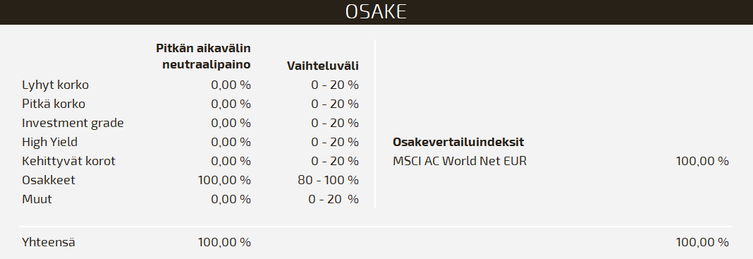 - Osake- ja raaka-ainesijoituksien käyttö sijoituskohteina ei ole sallittua.